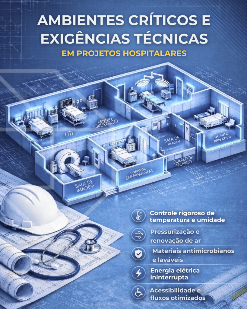 Ambientes críticos e exigências técnicas em projetos hospitalares