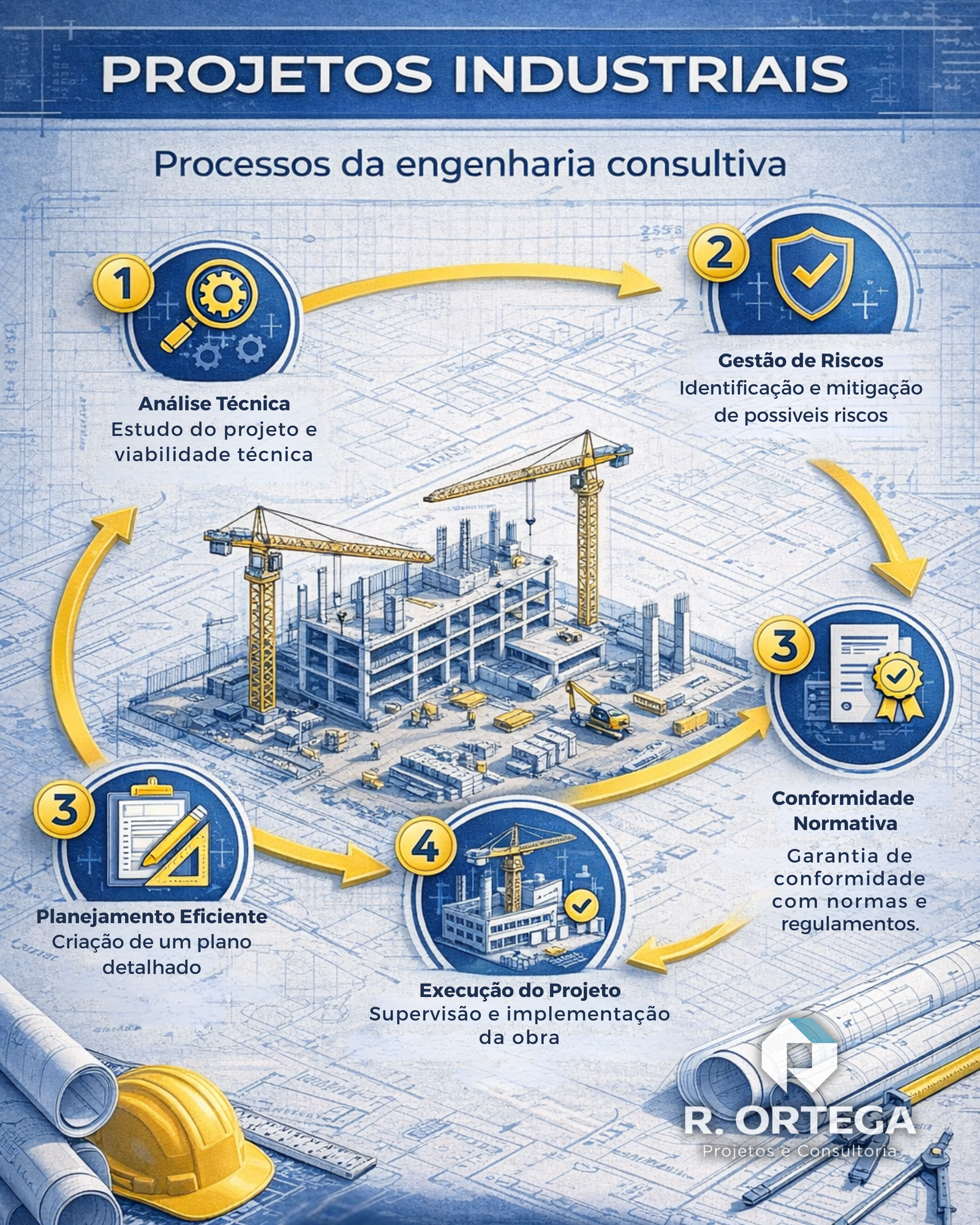 A R. Ortega Consultoria atua no desenvolvimento de projetos industriais com foco em precisão técnica, conformidade e eficiência em todas as etapas.